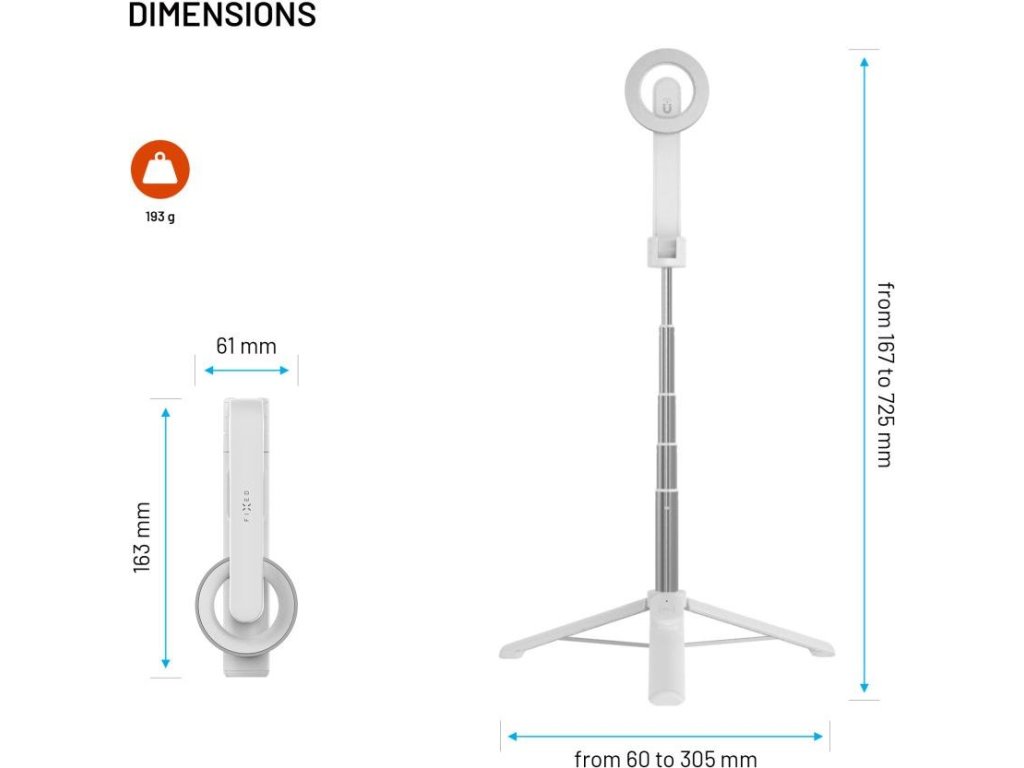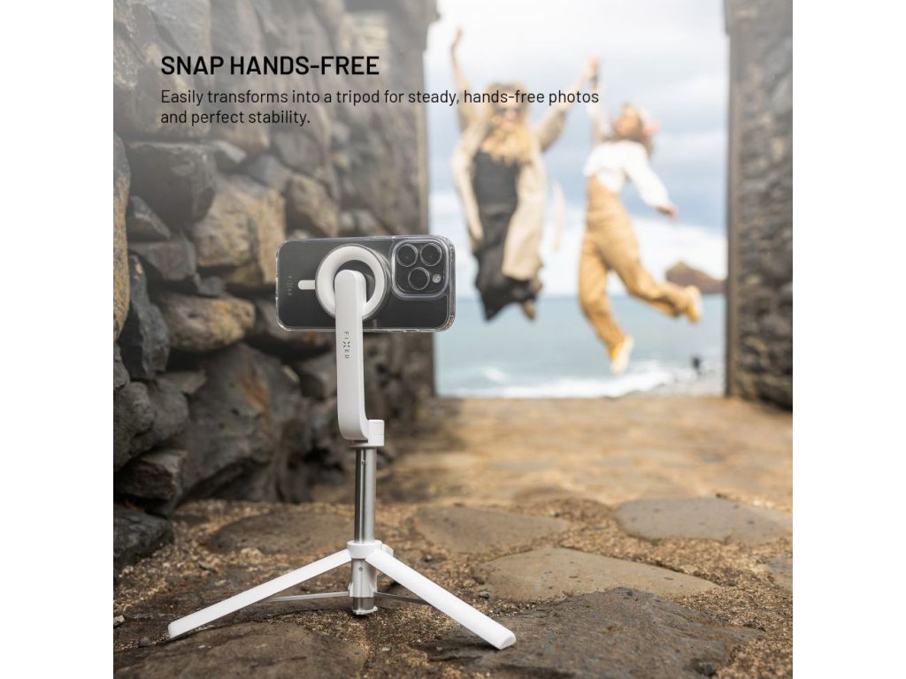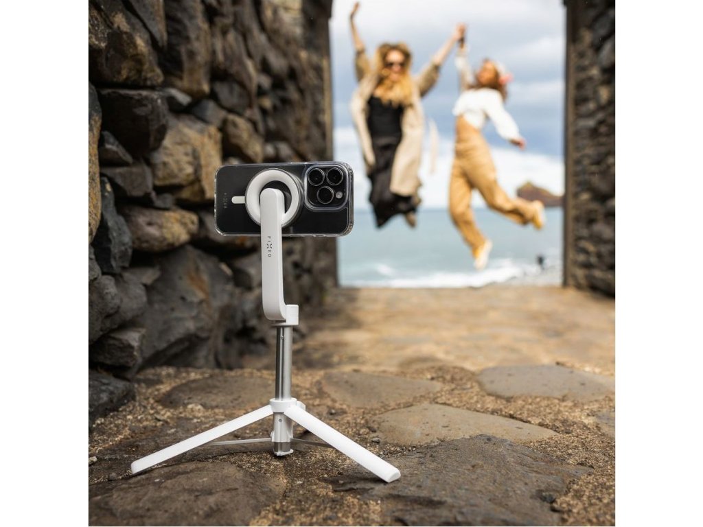 Selfie stick s tripodom FIXED MagSnap s podporou MagSafe a bezdrôtovou spúšťou, biely