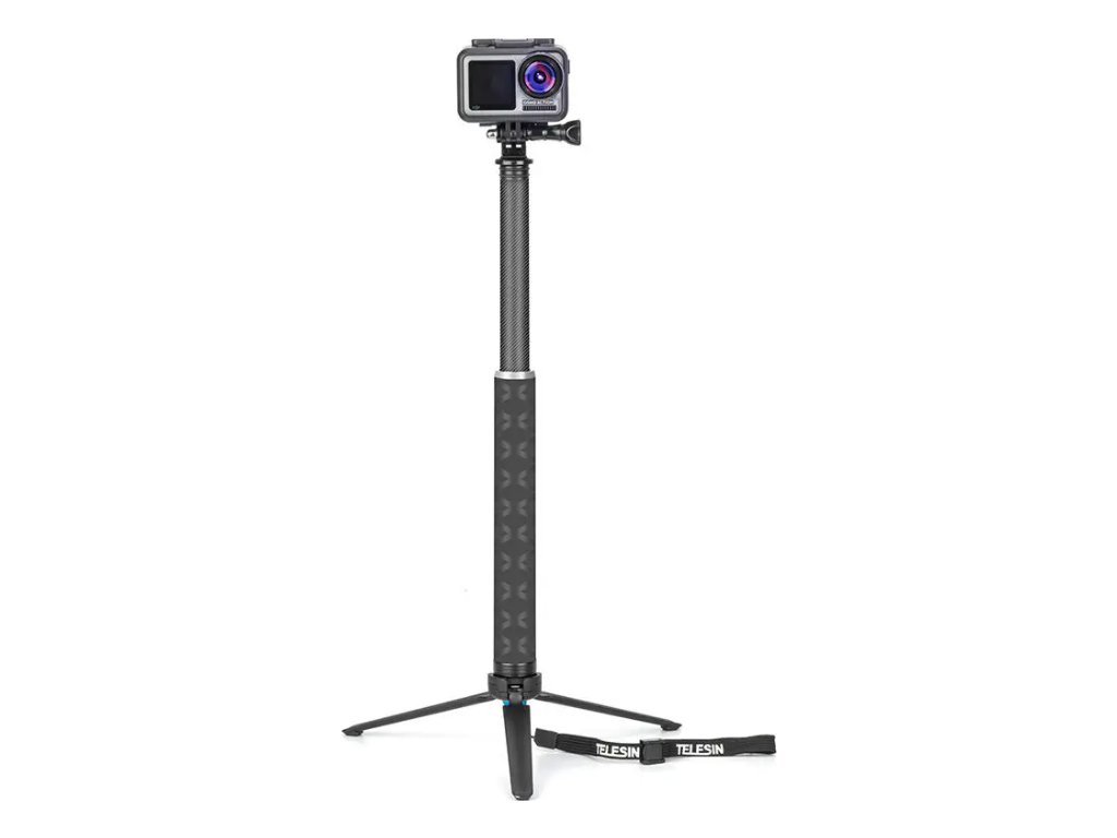 Táto selfie tyč z uhlíkových vlákien od spoločnosti Telesin vyniká vynikajúcim pomerom hmotnosti a výkonu - váži iba 113 ga zvládne zariadenie s hmotnosťou až 1,5 kg. S jej pomocou môžete bez námahy vytvárať originálne zábery. Vďaka 2 dostupným dĺžkam a priloženému statívu budete môcť príslušenstvo ešte lepšie prispôsobiť svojim potrebám. Výrobok je mimoriadne odolný a kompatibilný s mnohými fotoaparátmi.