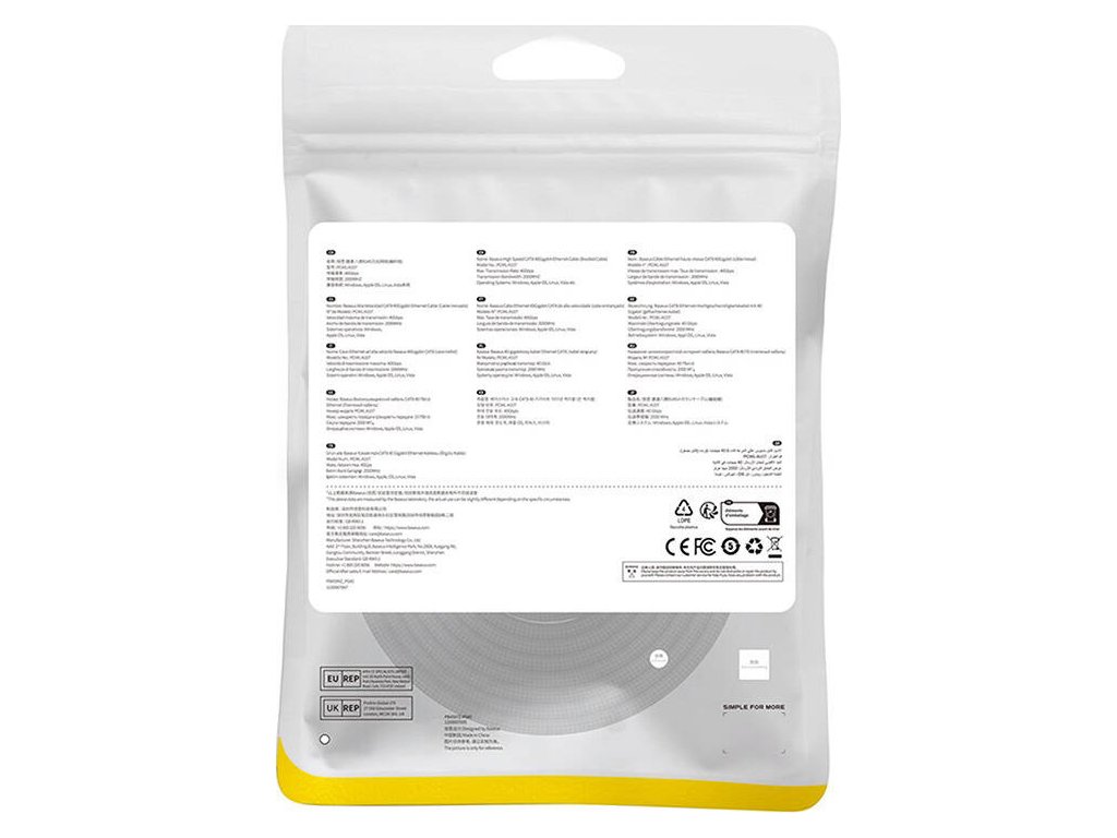 S káblom Baseus môžete okamžite prenášať súbory rýchlosťou max. 40Gb/s. Zosilnený kábel a použitie čistej medi navyše zaisťujú stabilný prenos signálu bez rušenia. Nylonové opletenie zase umožňuje dlhšiu životnosť výrobku a zabraňuje zamotávaniu. Kábel môžete úspešne pripojiť k routeru, prepínaču, modemu alebo televízoru.