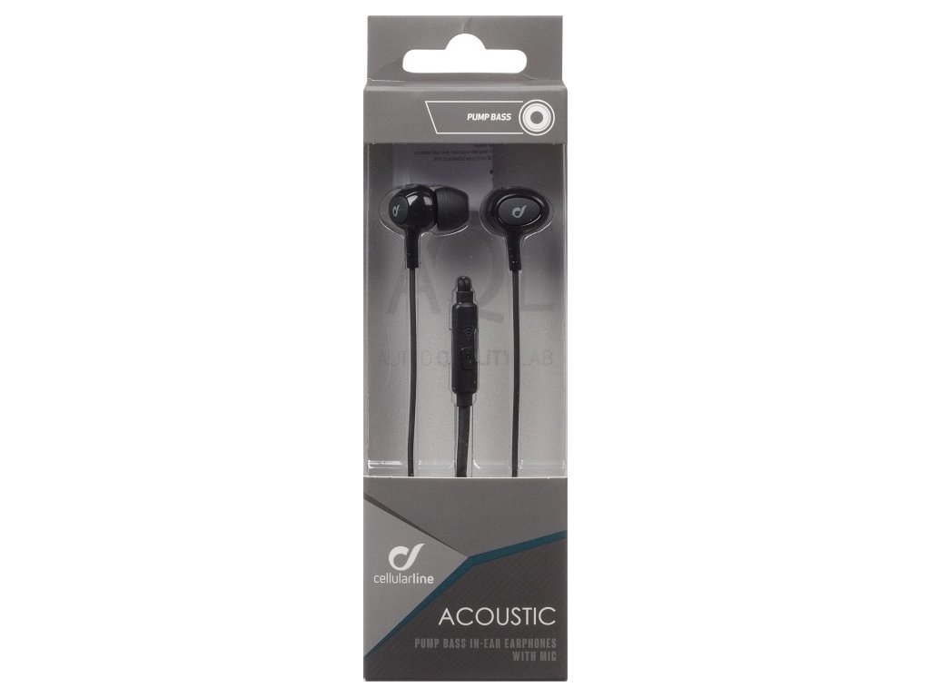 In-ear slúchadlá CELLULARLINE ACOUSTIC s mikrofónom, AQL® certifikácia, 3,5 mm jack, čierne