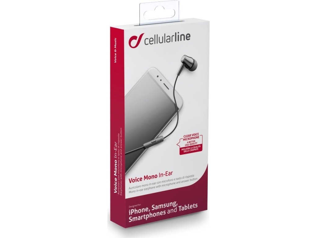 Komfortné mono In-Ear slúchadlo Cellularline VOICE v modernom dizajne, ktoré sa skvele hodí ku každému typu telefónu. Mono slúchadlo je alternatívou k veľkým headsetom a ponúka možnosť vybavovania telefónnych hovorov diskrétnou a pritom plne dostačujúcou formou. Slúchadlo je vybavené funkciou Clear Voice, ktorá ponúka veľmi vysokú kvalitu hovoru. Na kábli je okrem mikrofónu umiestnené aj tlačidlo pre prijímanie hovorov.