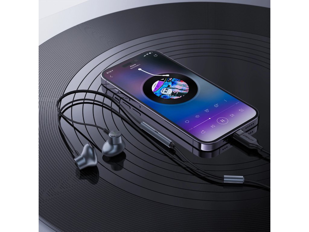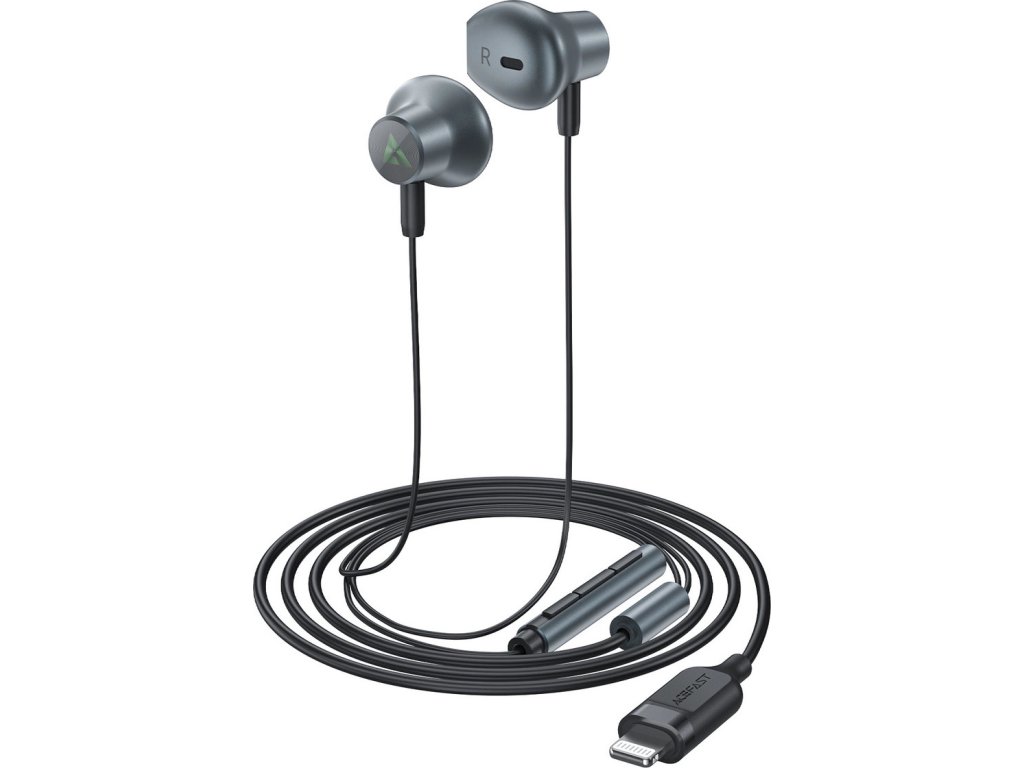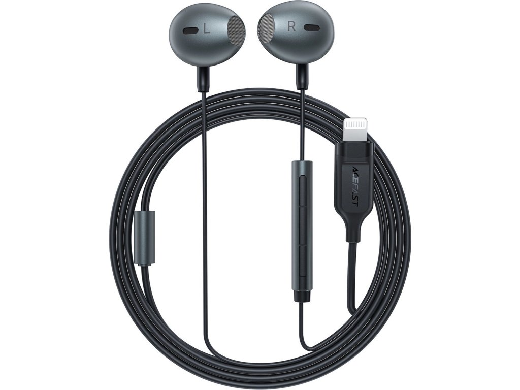 Slúchadlá do uší Acefast L1 s Lightning konektorom, mikrofónom a diaľkovým ovládaním 1,2 m - čierne