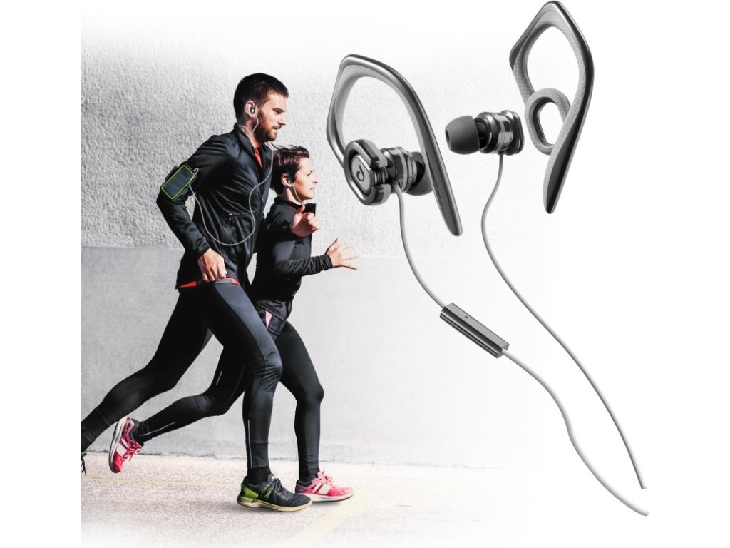 Športové slúchadlá CellularLine GRASSHOPPER s mikrofónom, 3,5 mm jack, čierna
