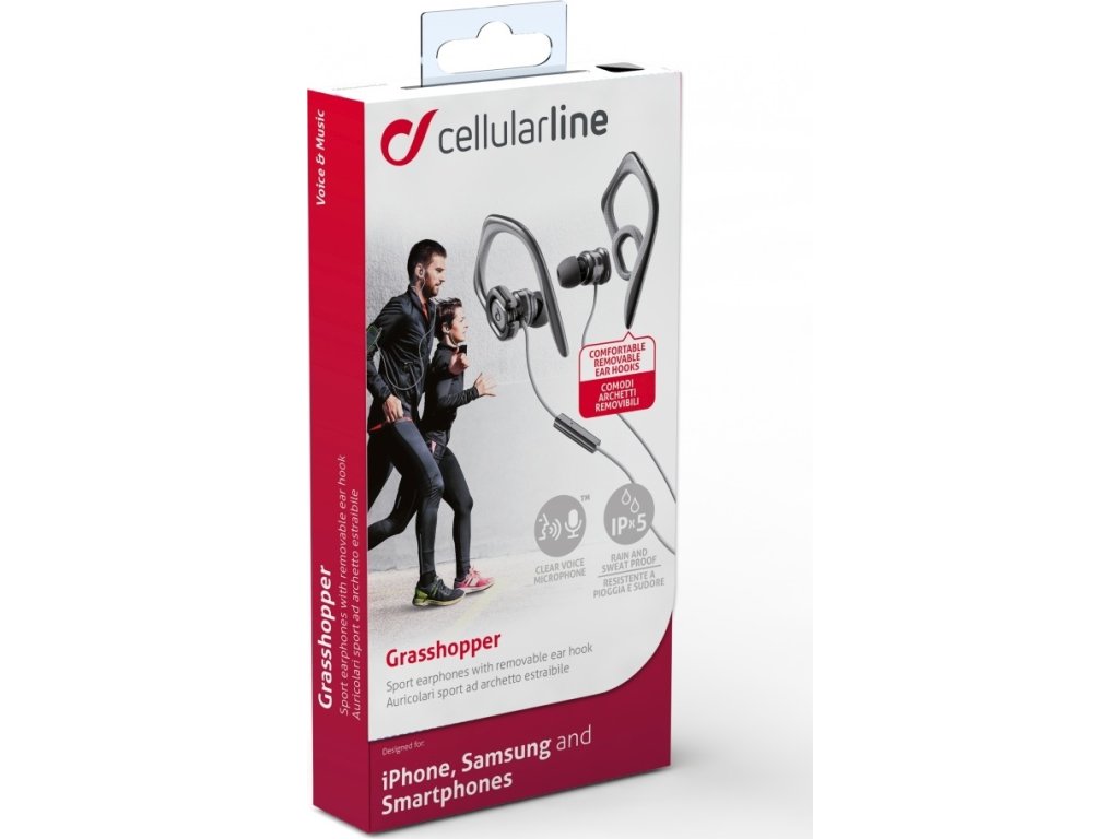 Športové slúchadlá CellularLine GRASSHOPPER so vstavaným mikrofónom a konektorom 3,5 mm jack. Ich mäkké a nastaviteľné úchyty do uší sa dokonale prispôsobia každému uchu, sú veľmi stabilné a ľahké. Počas dlhých športových aktivít vám slúchadlá KITE SPORT poskytnú vynikajúcu zvukovú kvalitu a nezmeškáte už žiadny hovor. GRASSHOPPER sú kompatibilné s každým zariadením, ktoré má slot 3,5 mm jack.
