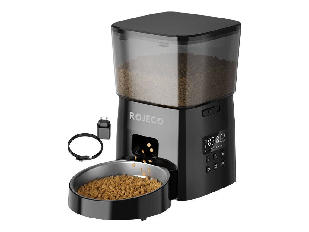 Inteligentný dávkovač krmiva Rojeco ponúka kapacitu až 2 litre, takže je schopný zaistiť krmivo pre mačky alebo malé psy po dobu 10 dní. Môžete tak bez obáv odísť na dovolenku s vedomím, že váš milovaný maznáčik je dobre nakŕmený aj v čase vašej neprítomnosti.