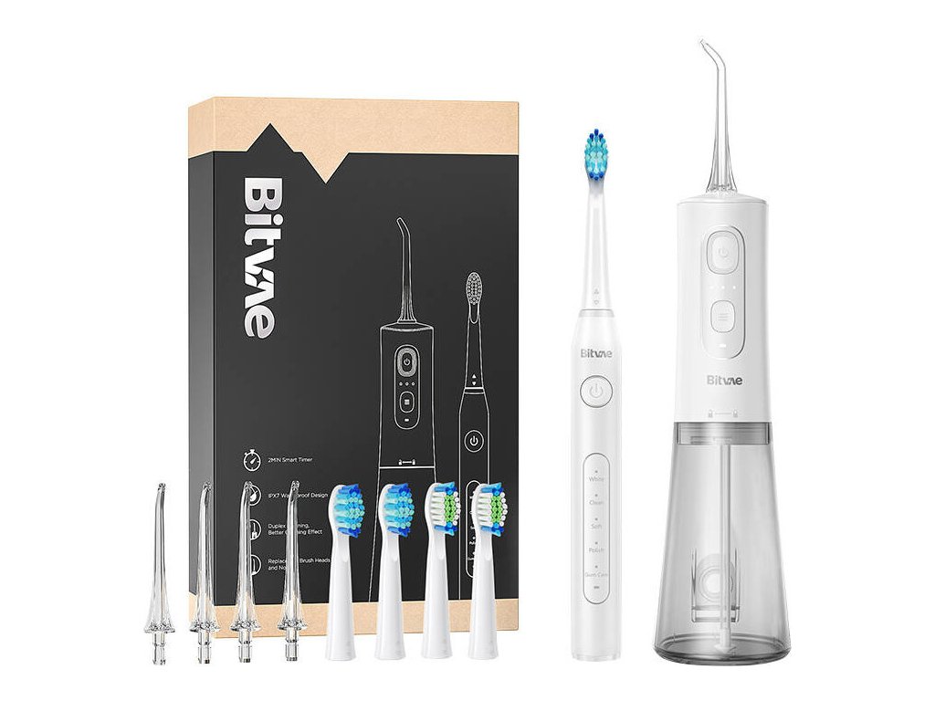 Sonická zubná kefka so sadou špičiek a irigátorom Bitvae D2+C2 (biela)