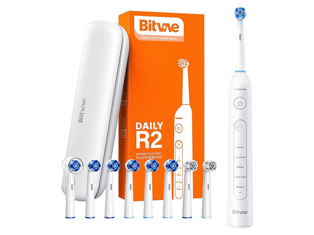 Sonická zubná kefka so sadou špičiek a cestovným puzdrom Bitvae R2 (biela)