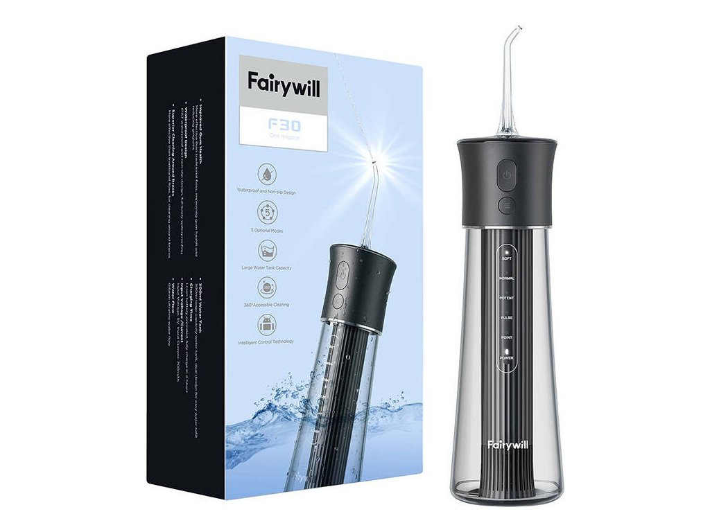 Teraz sa môžete o svoju ústnu hygienu starať ešte dôkladnejšie. Irigátor FairyWill F30 ponúka na výber až z 5 režimov a umožňuje dôkladné čistenie zubov. Odstraňuje až 99,99% nečistôt. Dodáva sa až so 6 vymeniteľnými tryskami, takže irigátor môže používať celá vaša rodina. Irigátor F30 je tiež vodotesný podľa normy IPX7, takže ho môžete používať aj v sprche.
