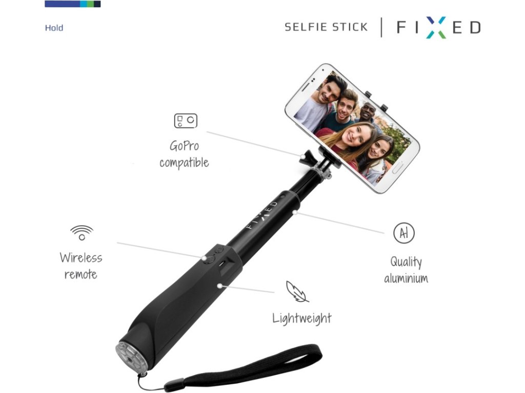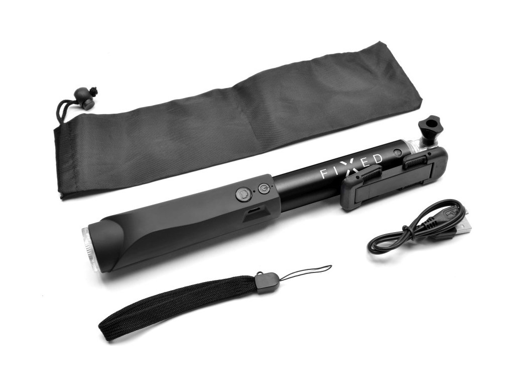 Teleskopický selfie stick FIXED v luxusnom hliníkovom prevedení s BT spúšťa, čierny
