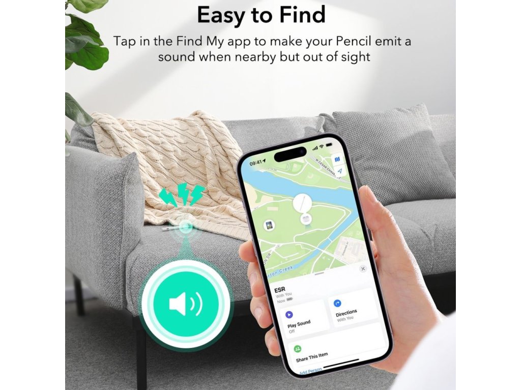 ESR Geo Digital Stylus je pokročilý nástroj na kreslenie a písanie, ktorý vyniká svojou funkčnosťou a inovatívnymi riešeniami. Jednou z najdôležitejších funkcií je vstavaná funkcia určovania polohy cez Apple Find My, vďaka ktorej je možné stylus ľahko nájsť, aj keď sa stratí. Stačí použiť aplikáciu a stylus vydá zvuk, ktorý vám pomôže ho nájsť. Ďalšou vymoženosťou je tlačidlo skratky, ktoré umožňuje rýchlo prepínať medzi domovskou stránkou a zobrazením multitaskingu. Vďaka nemu môžete tiež v reálnom čase kontrolovať úroveň nabitia batérie.