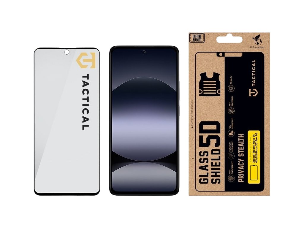 GLASS SHIELD PRIVACY STEALTH Ochranné sklo Tactical Glass Shield Privacy Stealth chráni Tvoje zariadenie pred najdrsnejšími stretmi a obsah displeja pred šmírákmi. Testované na bojisku každodenného diania, stvorené pre tie najnáročnejšie scenáre! FLEXIBILNÁ TVRDOSŤ Ochranné sklo Tactical Glass Shield Privacy Stealth odoláva a zároveň pohlcuje nárazy, čím poskytuje neprekonateľnú odolnosť pri zachovaní flexibility, ktorá je potrebná na výkon v tých najnáročnejších podmienkach. Je to preverený bojovník, ktorý vydrží dlhšie ako väčšina ochrany na trhu. NIE JE SKLO AKO SKLO Toto nie je len obyčajné sklo - je to viacvrstvová obranná jednotka. Hlavná vrstva s technológiou Privacy Mode, chráni obsah displeja pred šmírákmi. To znamená, že ktokoľvek vedľa vás neuvidí obsah vášho displeja. Vďaka oleofóbnej vrstve a vrstve proti odtlačkom prstov a nárazom zostane tvoj displej čistý a chránený pred každodennými nárazmi, rozliatím alebo poškriabaním. Jemne leštené hrany a precízna vrstva AB lepidla zaisťujú vzduchotesné priľnutie k tvojmu zariadeniu bez toho, aby zanechali slabé miesta, kam by sa mohol dostať prach alebo nečistoty. Každé sklo je na mieru prispôsobené konkrétnemu modelu zariadenia, zaručujúce dokonalú ochranu. NEODOLATEĽNE ODOLNÝ Tento kúsok nie je len pre parádu. U nás v Tactical dbáme na to, aby veci niečo vydržali. Ochranné sklo bolo podrobené tvrdým podmienkam a pri výrobe sme použili veľmi odolné materiály a aplikovali najnovšie technológie pre čo najlepší výstup ochrany. Je to sklo, na ktoré sa môžeš spoľahnúť aj v tých najextrémnejších podmienkach. Aj preto sa na toto sklo vzťahuje program doživotnej záruky.* Pozri podmienky programu doživotnej záruky Tactical. BE ECO My v Tactical máme radi prírodu. Všetky naše produkty sú balené do ECO škatuliek z recyklovaného papiera tak, aby čo najmenej zaťažovali životné prostredie. Mysli takticky!