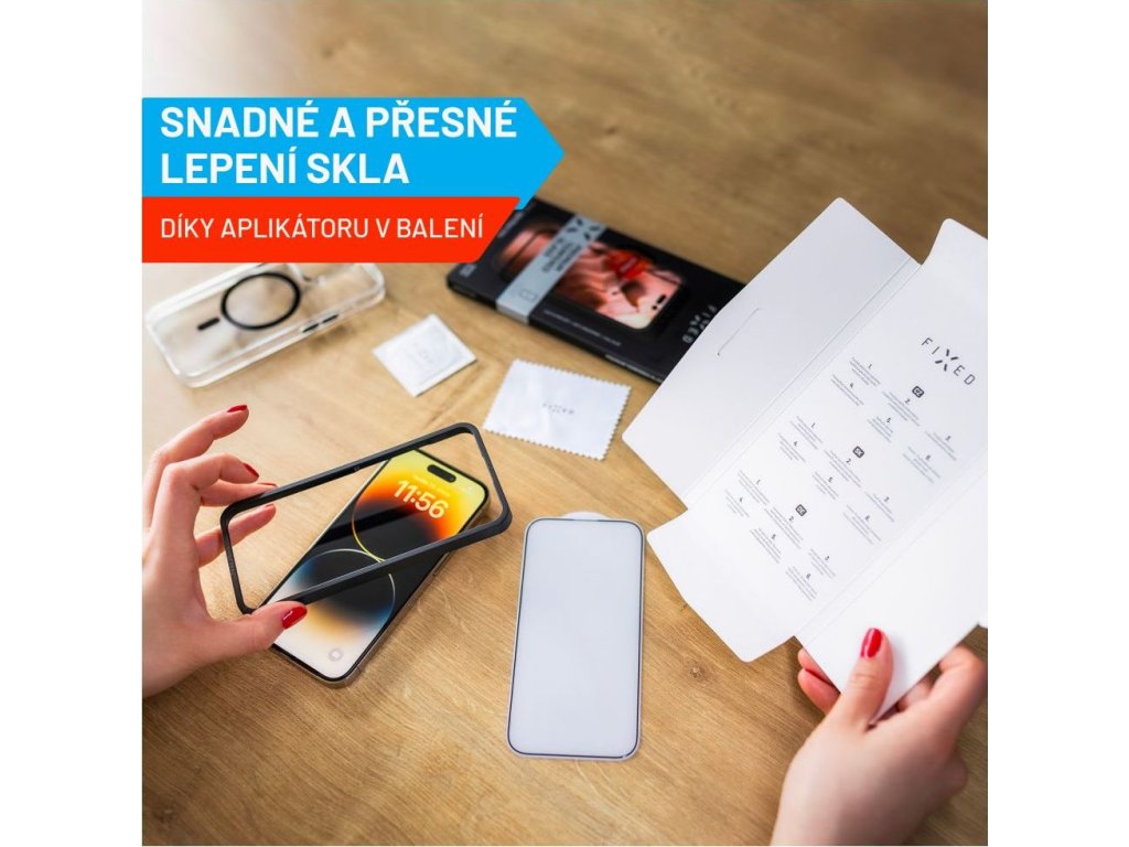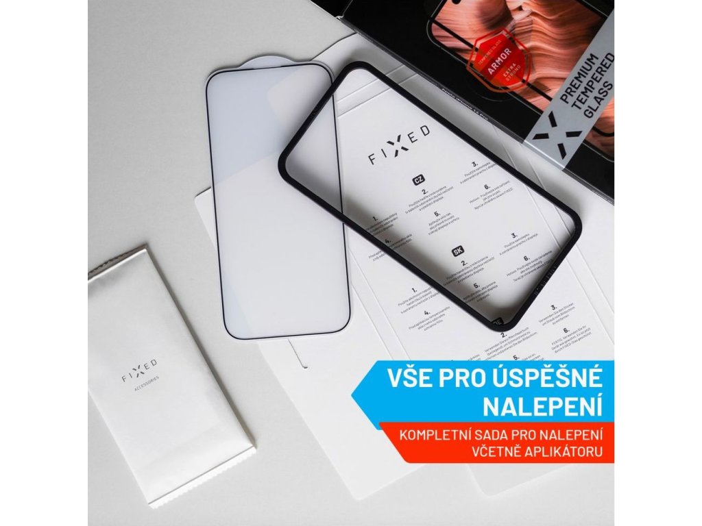 Prémiové ochranné tvrdené sklo FIXED Armor s aplikátorom pre Apple iPhone 12/12 Pro, čierne