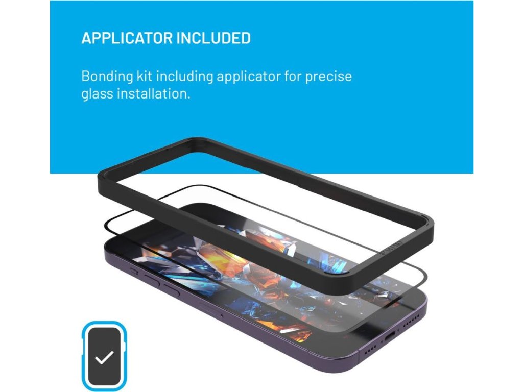 Kvalitné tvrdené 5D sklo pre Apple iPhone 12 / 12 Pro, ktoré ochráni celý displej až k jeho okrajom s inštalačným aplikátorom pre jednoduchú a presnú aplikáciu skla bez prachu.