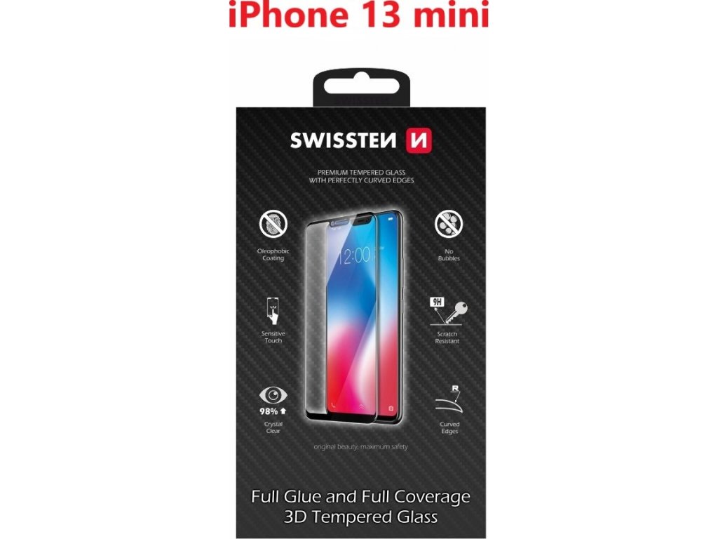 SKLO SWISSTEN ULTRA DURABLE 3D FULL GLUE GLASS APPLE IPHONE 13 mini ČIERNE