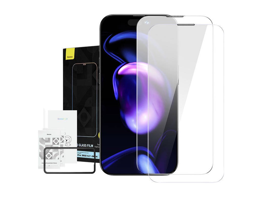 Baseus Crystal tvrdené sklo s 0,3 mm protiprachovou vrstvou pre iPhone 14 Pro Max (2ks).