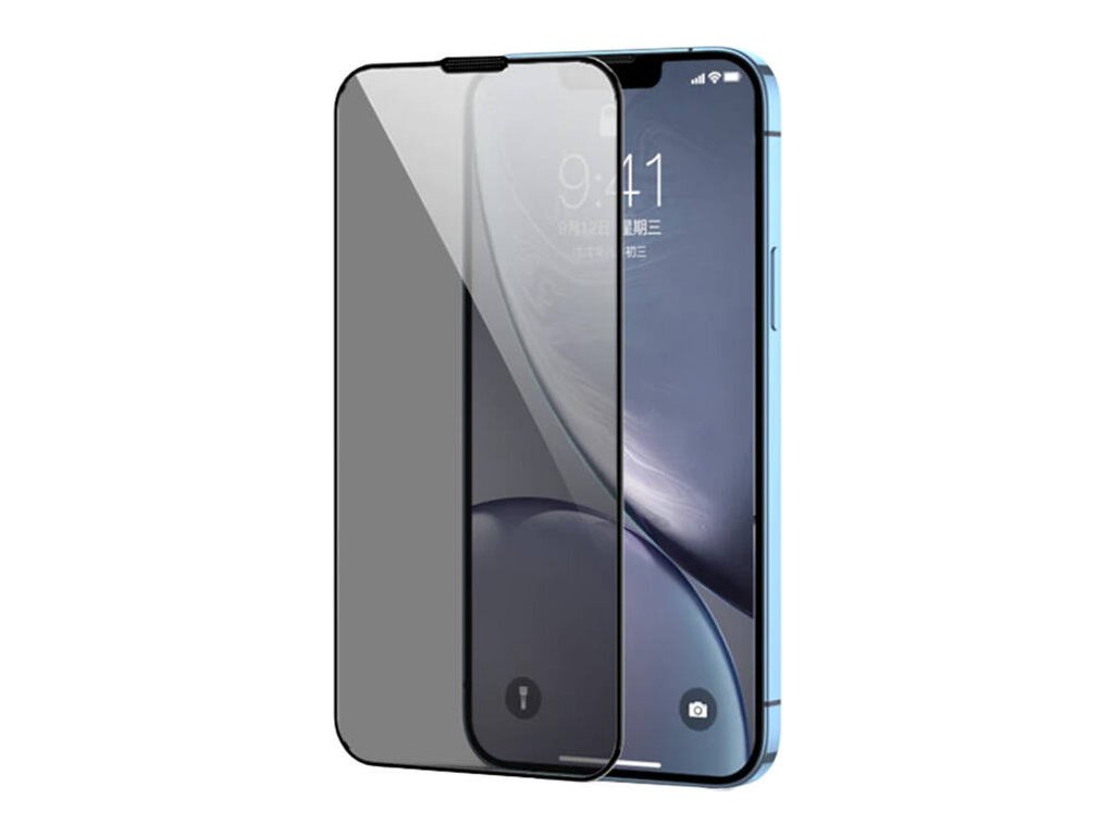 Tvrdené sklo Wozinsky pre Samsung Galaxy iPhone 15 Pro, čierne, so zakriveným povrchom a antispy filtrom.