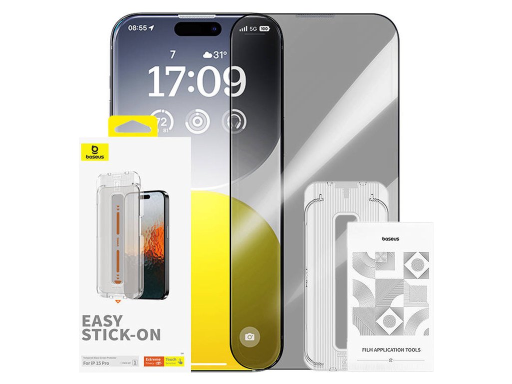Tvrdené sklo Baseus Sapphire iPhone 15 Pro na ochranu súkromia.