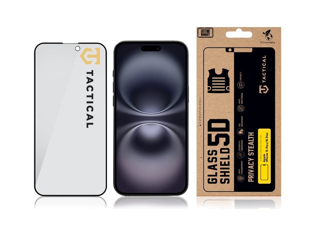 Tactical Glass Shield Privacy Stealth 5D sklo pre Apple iPhone 15 Plus/16 Plus Black