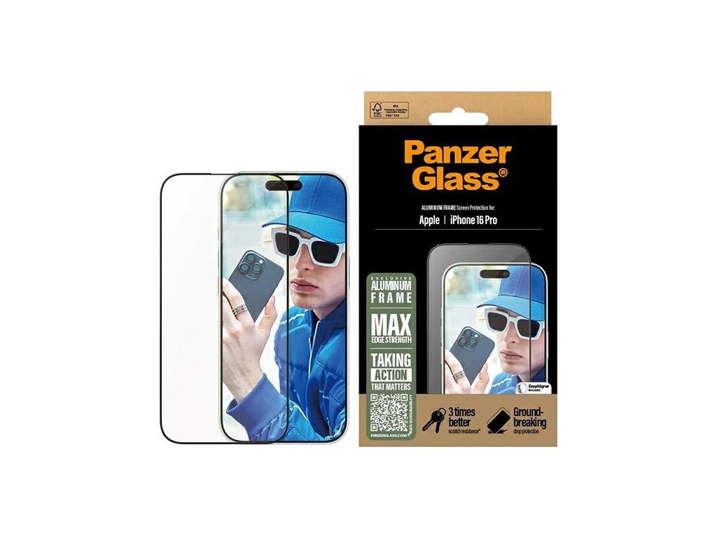 PanzerGlass Screen Protector Aluminum Frame iPhone 16 Pro 6.3" Ultra-Wide Fit 2850