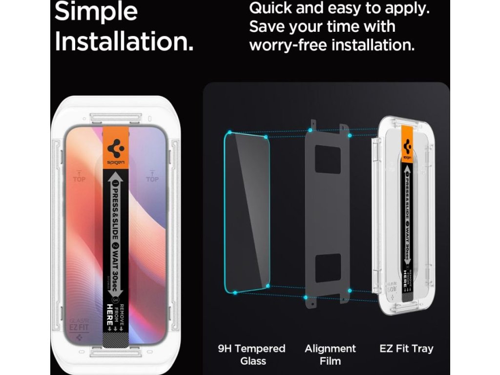 Spigen Glass tR EZ Fit 2 Pack ochranné sklo 2 ks transparentné tvrdené sklo - tvrdosť 9H súčasťou balenia pomocný inštalačný rámček po aplikácii skla zostáva 100% citlivosť obrazovky oleofóbny povrch…