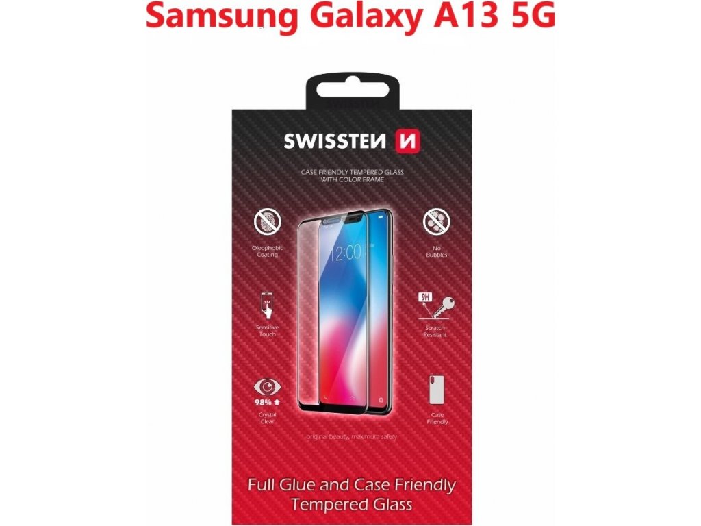 SKLO SWISSTEN FULL GLUE, COLOR FRAME, CASE FRIENDLY SAMSUNG A136 GALAXY A13 5G ČIERNE