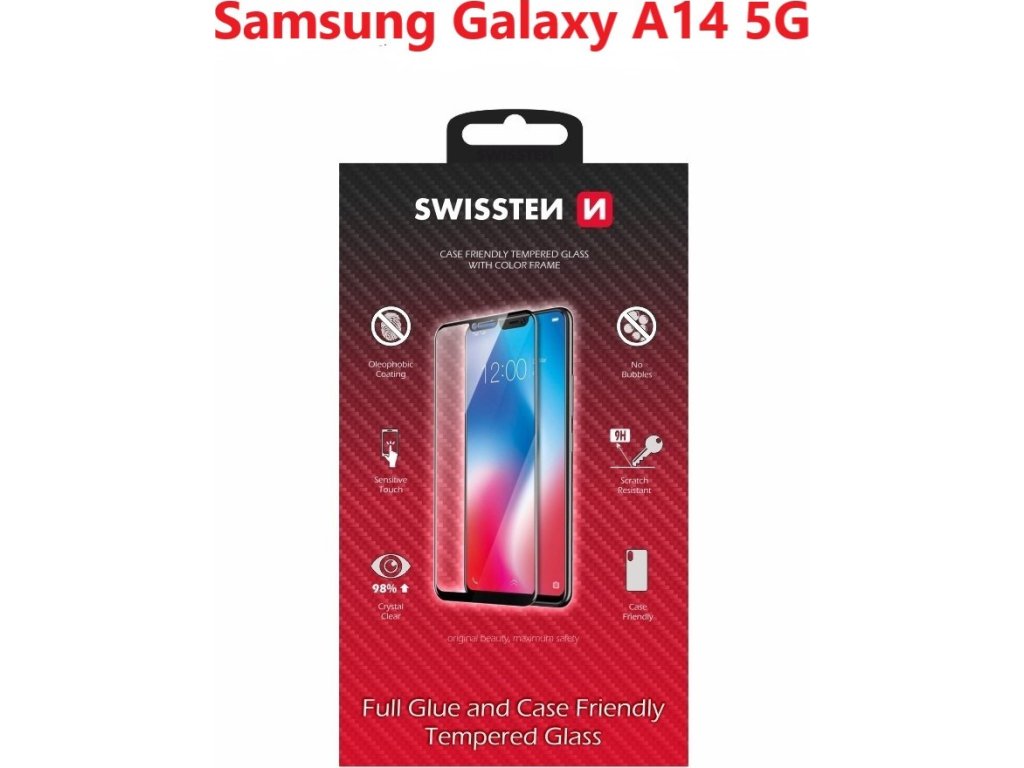 SKLO SWISSTEN FULL GLUE, COLOR FRAME, CASE FRIENDLY SAMSUNG A146 GALAXY A14 5G ČIERNE