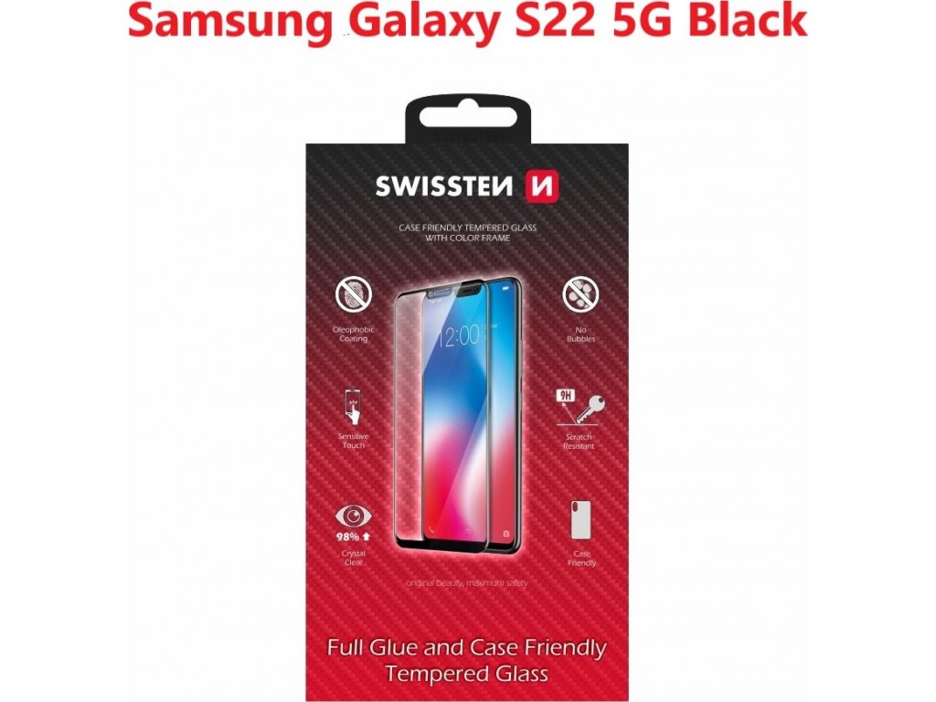 SKLO SWISSTEN FULL GLUE, COLOR FRAME, CASE FRIENDLY SAMSUNG S901B GALAXY S22 5G ČIERNE
