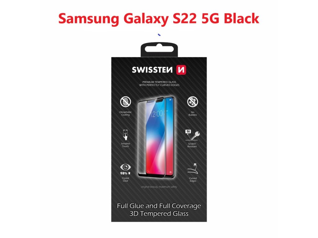 SKLO SWISSTEN ULTRA DURABLE 3D FULL GLUE GLASS SAMSUNG S901B GALAXY S22 5G ČIERNE
