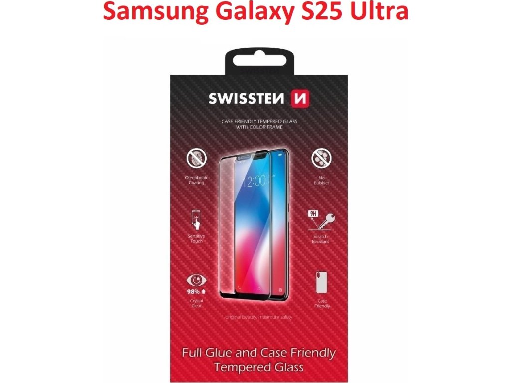 SKLO SWISSTEN FULL GLUE, COLOR FRAME, CASE FRIENDLY PRE SAMSUNG GALAXY S25 ULTRA ČIERNE