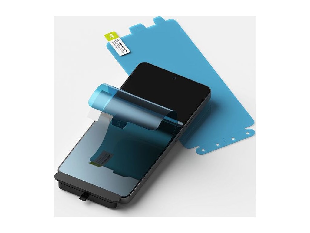 Krištáľovo čistá ochranná fólia Ringke Dual Easy pokrývajúca celý povrch obrazovky. Je vyrobený z vysoko kvalitného uretánového polykarbonátu a má odolnosť proti poškriabaniu 3H, čo účinne chráni displej pred poškodením. Fólia dokonale reprodukuje zobrazované farby a má špeciálnu antimastnú vrstvu, ktorá chráni displej pred odtlačkami prstov.