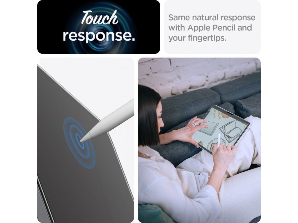 Spigen Paper Touch je inovatívny kryt displeja iPadu, ktorý poskytuje jedinečný používateľský zážitok. Tvrdené sklo s tvrdosťou 9H zaručuje bezkonkurenčnú odolnosť a ochranu displeja. Matný povrch zabraňuje odtlačkom prstov a znižuje odlesky, čo uľahčuje pohodlné používanie zariadenia aj za jasného svetla.