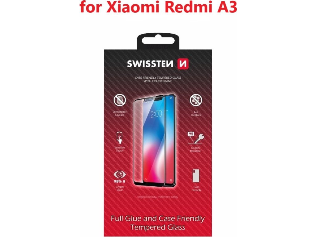 SKLO SWISSTEN FULL GLUE, COLOR FRAME, CASE FRIENDLY PRE XIAOMI REDMI A3 ČIERNE