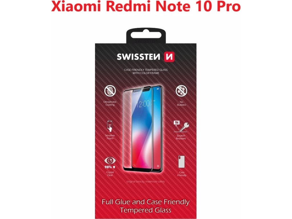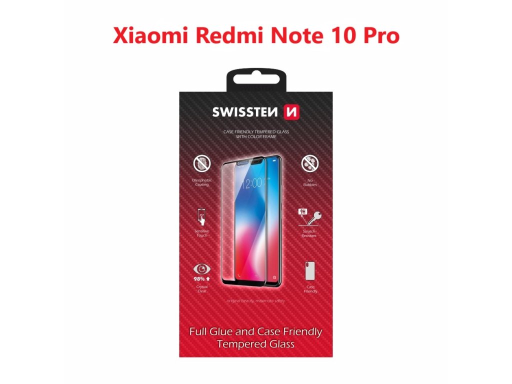 SKLO SWISSTEN FULL GLUE, COLOR FRAME, CASE FRIENDLY PRE XIAOMI REDMI NOTE 10 PRO ČIERNE