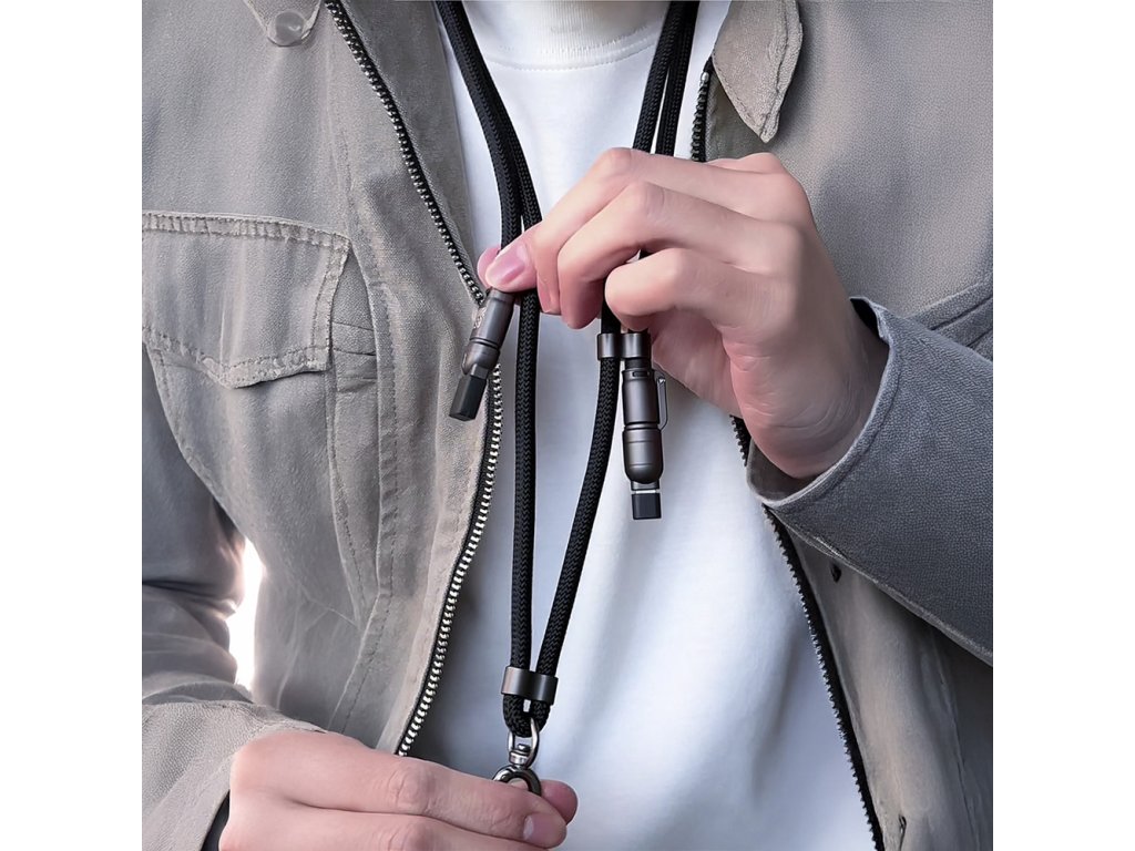 4v1 kábel / šnúrka na krk Dudao L20MAX USB-A / USB-C / Lightning PD QC 65W 1,5 m - čierny