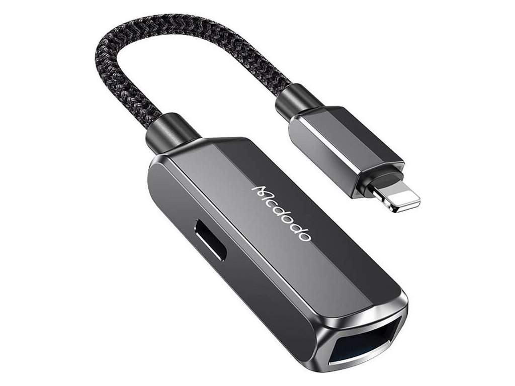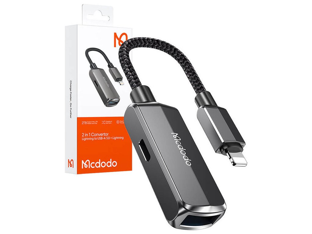 Vylepšite možnosti svojho iPhonu alebo iPadu pomocou adaptéra Mcdodo OTG. Umožňuje vám k vybranému zariadeniu pripojiť rôzne periférie, ako je pevný disk, klávesnica, myš, čítačka kariet a ďalšie. Umožňuje tiež súčasný prenos dát a nabíjanie prúdom až 2,4A vďaka svojmu prídavnému portu. Vyniká svojou odolnou a pritom ľahkou konštrukciou, vďaka ktorej je pohodlné nosiť stále so sebou.