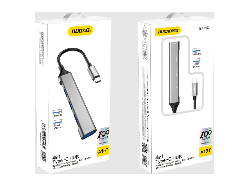 Dudao HUB 4v1 USB-C - 4x USB-A (3x USB2.0 / USB3.0) 6,3 cm čierny (A16T)
