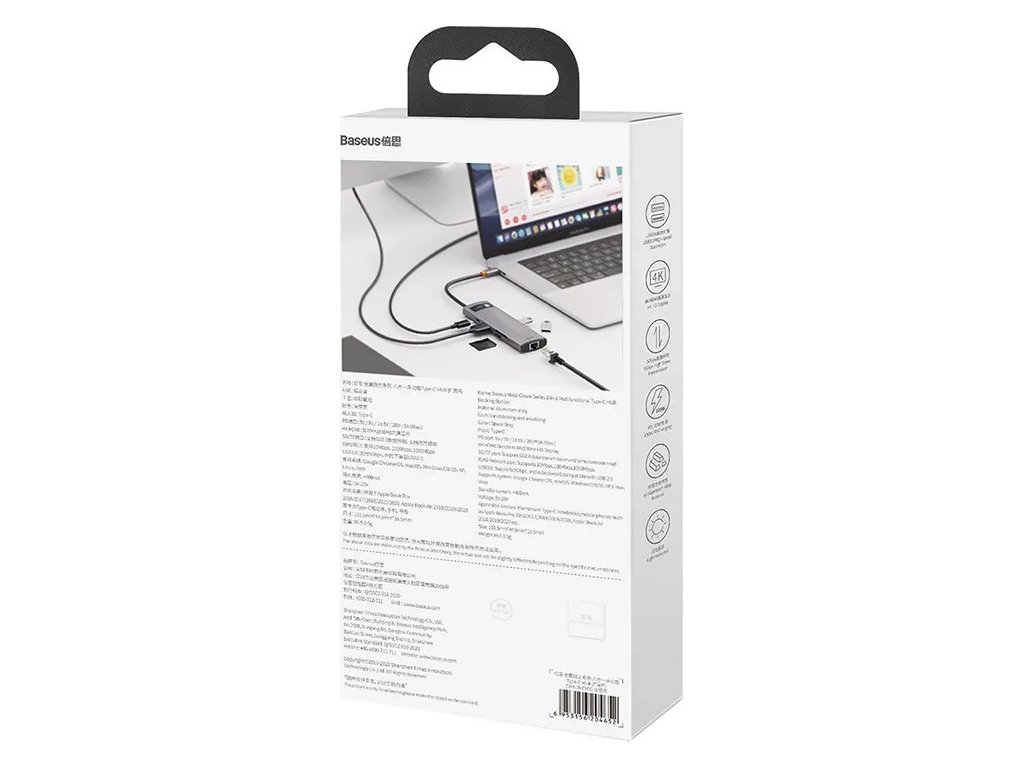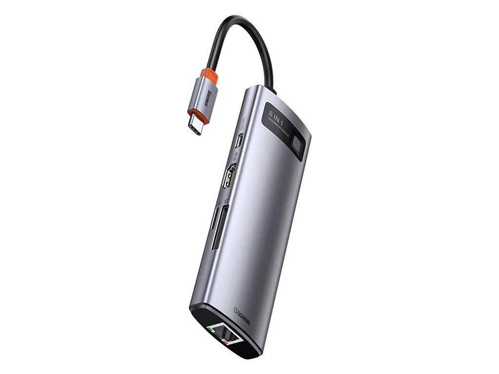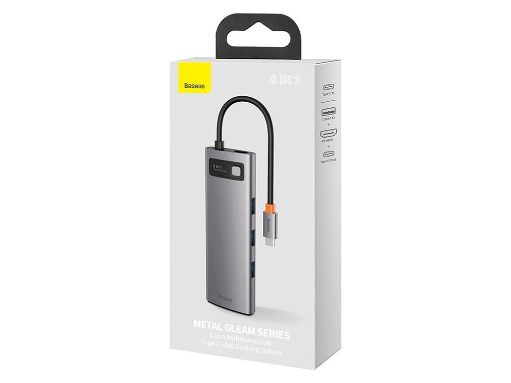 Hub 8v1 Baseus Metal Gleam Series, USB-C na 3x USB 3.0 HDMI USB-C PD Ethernet RJ45 microSD/SD