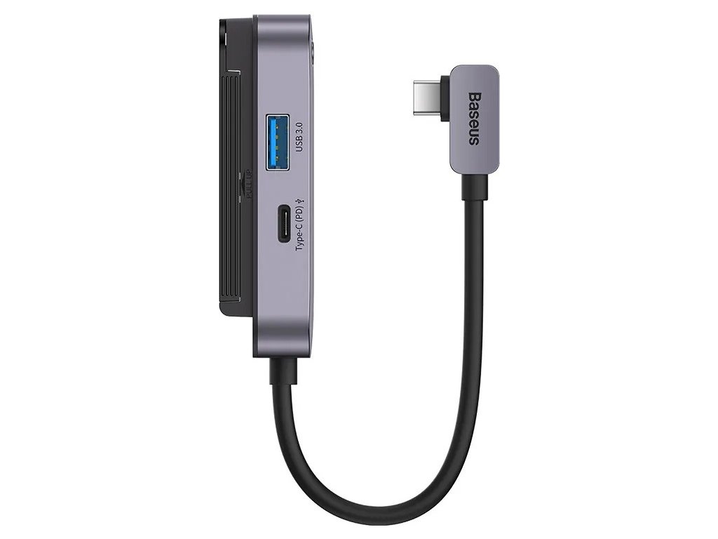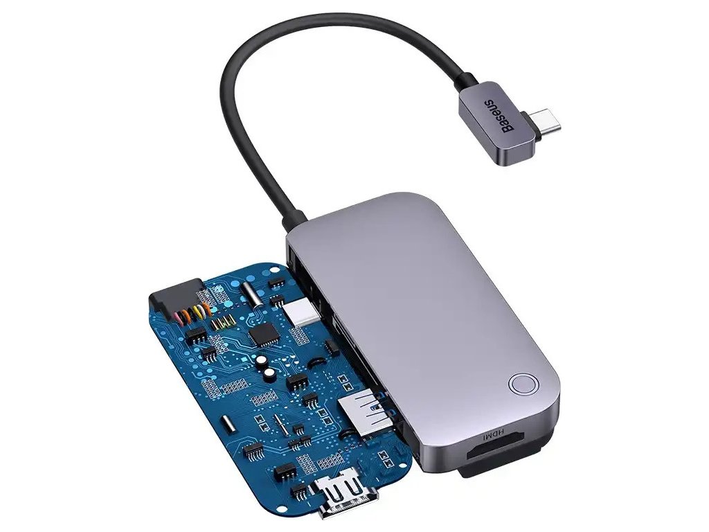 Pohodlne používajte niekoľko zariadení naraz! Rozbočovač 6 v 1 Baseus PadJoy Series je vybavený 5 portami - HDMI, USB-C, USB 3.0, mini jack 3,5 mm a čítačkou kariet SD/TF, takže je vhodný pre domáce aj kancelárske použitie. Umožňuje bleskový prenos dát rýchlosťou až 500 MB/sa rýchle 100W nabíjanie PD. Špeciálny držiak navyše umožňuje adaptér pripevniť na obrazovku zariadenia.