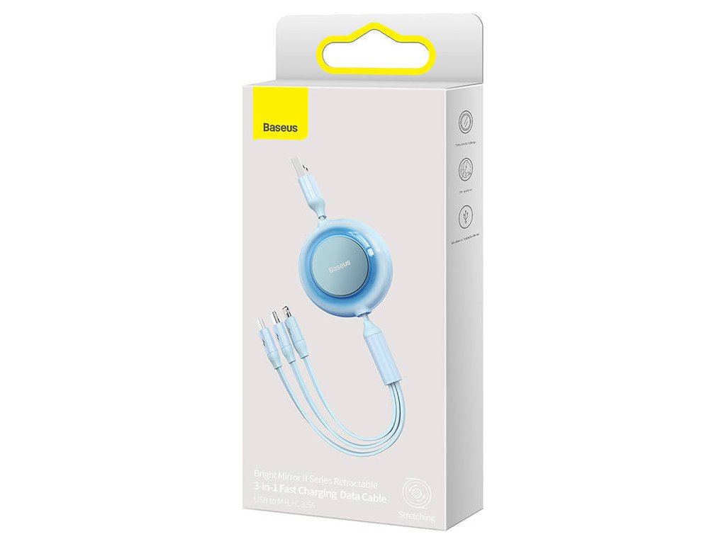 Baseus Bright Mirror 2, USB kábel 3 v 1 pre micro USB/USB-C/Lightning 3,5 A 1,1 m (nebesky modrý)