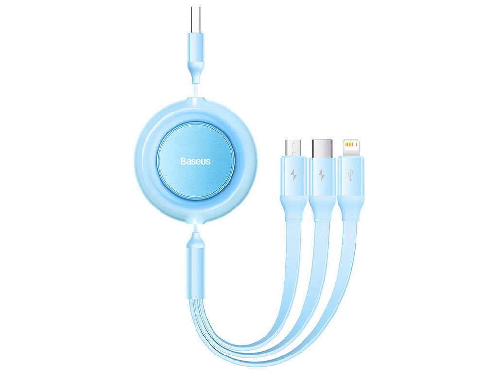 Tento praktický kábel od spoločnosti Baseus umožňuje rýchle a bezpečné nabíjanie 3,5 A a prenos dát na konektore Lightning rýchlosťou 480 Mb/s. S jeho pomocou nabijete zariadenie od rôznych výrobcov, pretože kábel ponúka hneď 3 výstupy: micro USB, Lightning a USB-C. Nabíjanie troch zariadení naraz vám ušetrí čas, navyše vďaka zaťahovaciemu prevedeniu môžete dĺžku kábla prispôsobiť svojim potrebám.