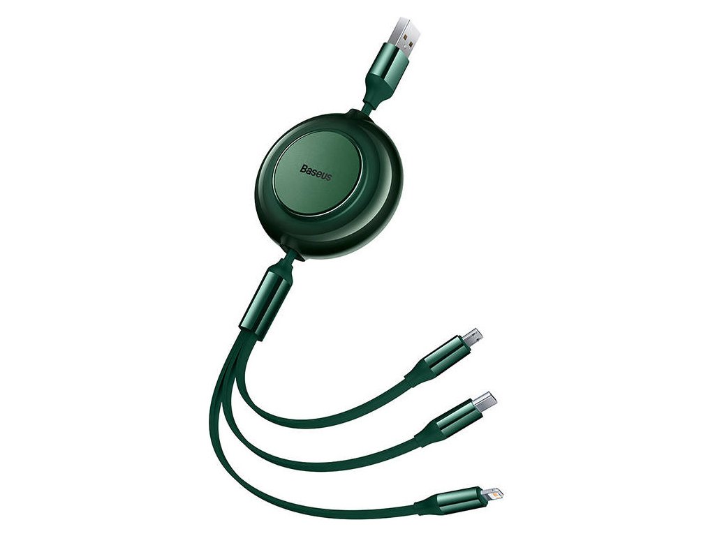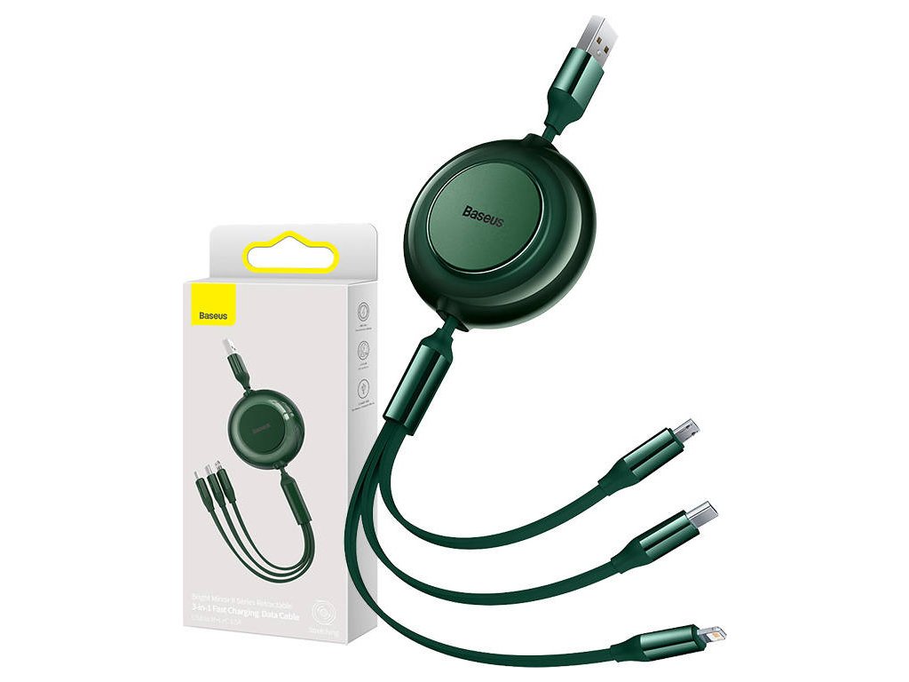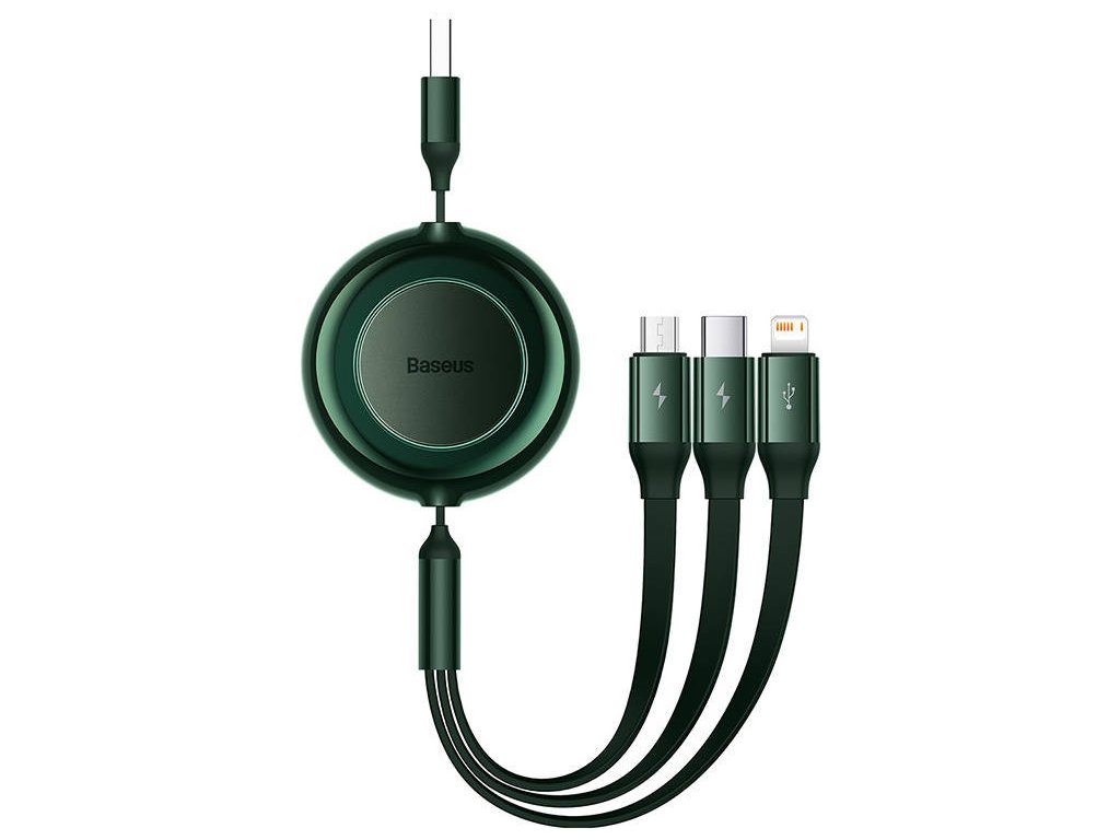 Baseus Bright Mirror 2, USB kábel 3 v 1 pre micro USB/USB-C/Lightning 3,5 A 1,1 m (zelený)