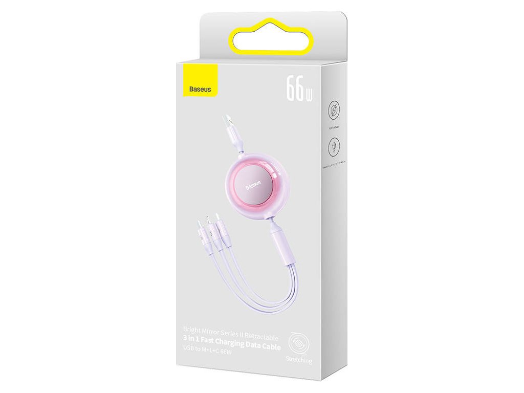 Baseus Bright Mirror kábel USB 3 v 1, micro USB/Lightning/USB-C, 66W/2A, 1,1 m (fialový)