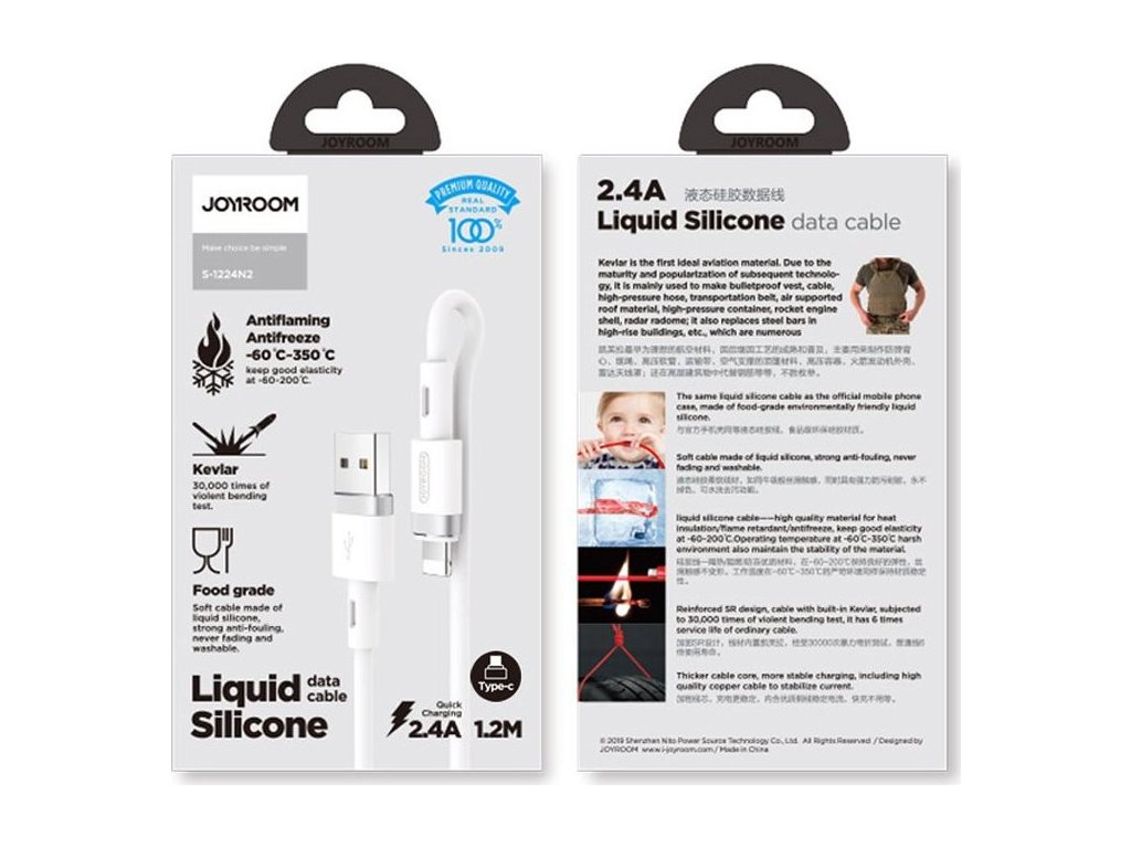 Dátový kábel Joyroom s tekutým silikónom N2 USB-A / Lightning 2,4A 1,2 m - biely