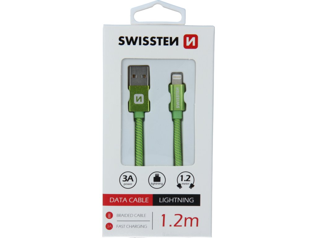 DÁTOVÝ KÁBEL SWISSTEN TEXTILE USB / LIGHTNING 1,2 M ZELENÝ