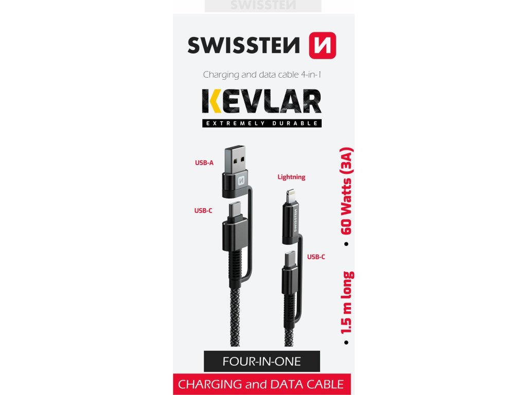 DÁTOVÝ KÁBEL SWISSTEN KEVLAR 4in1 3A 1,5 M ANTRACIT
