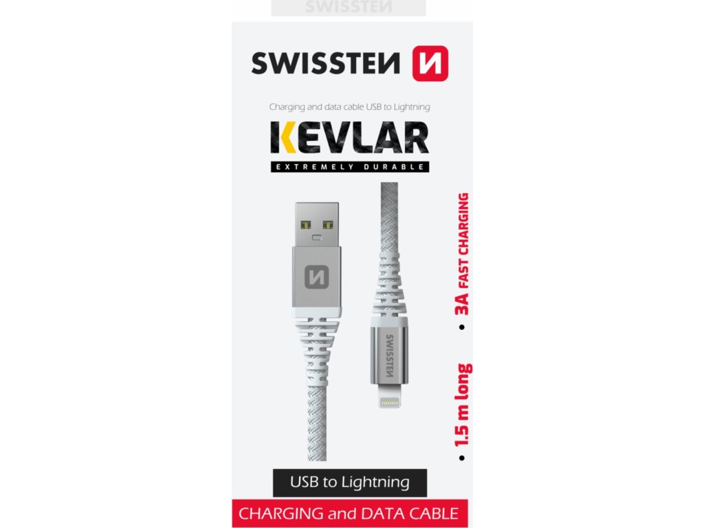 DÁTOVÝ KÁBEL SWISSTEN KEVLAR USB / LIGHTNING 1,5 M BIELÝ