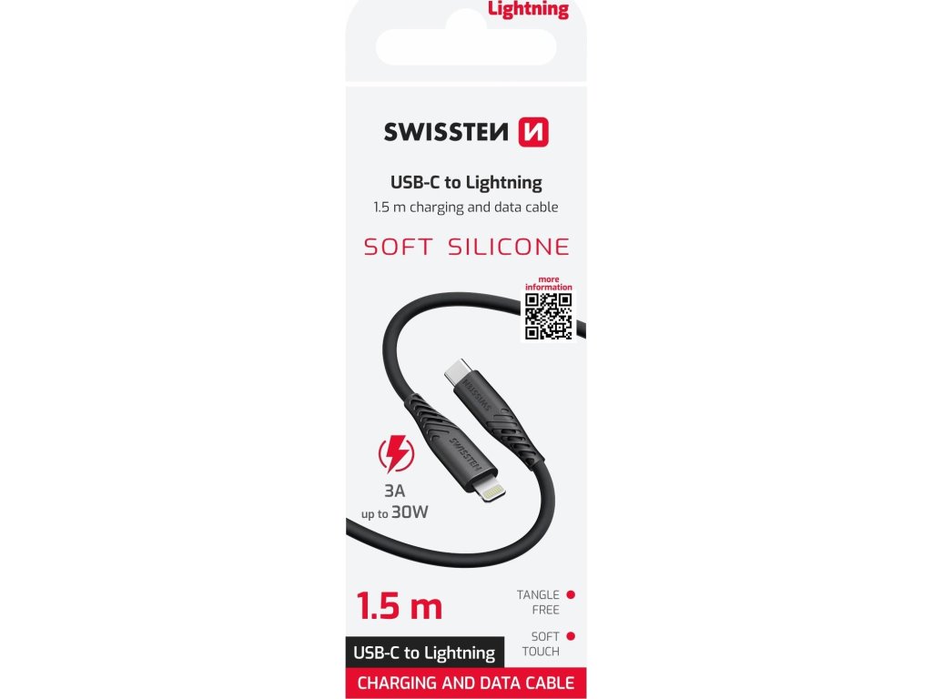 DÁTOVÝ KÁBEL SWISSTEN SOFT SILICONE USB-C / LIGHTNING 1,5 M 60W ČIERNY