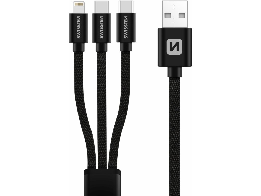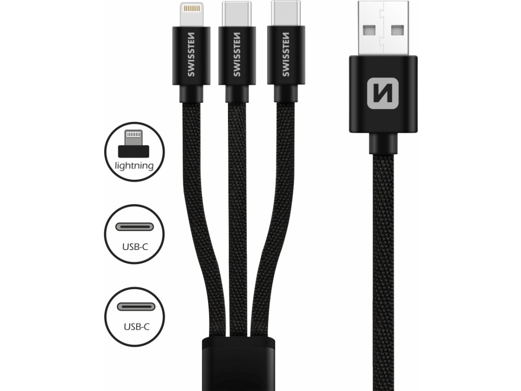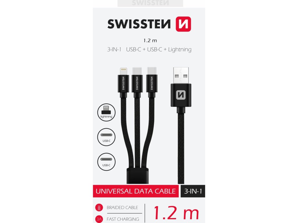 DÁTOVÝ KÁBEL SWISSTEN TEXTILE 3in1 1,2 M ČIERNY
