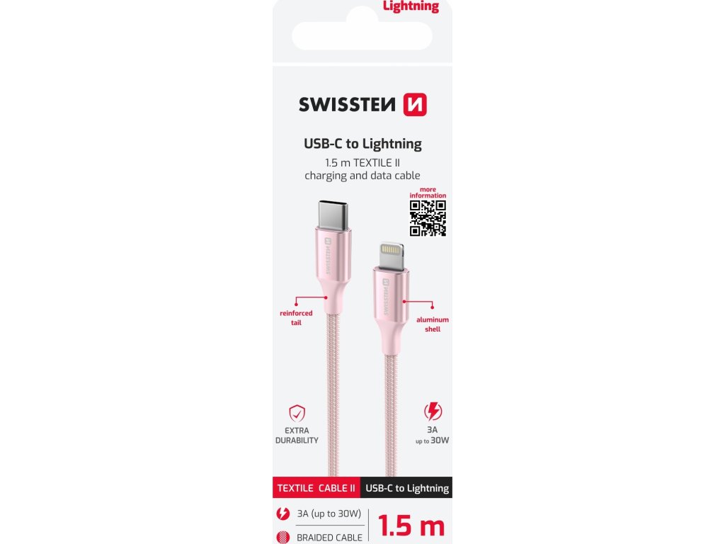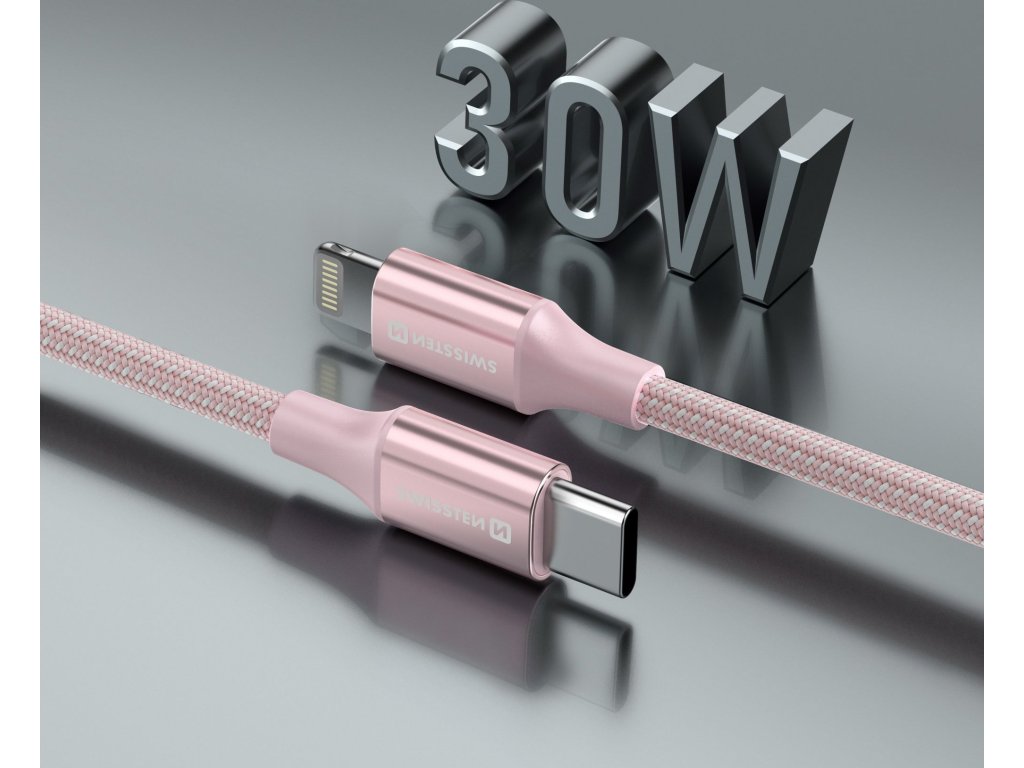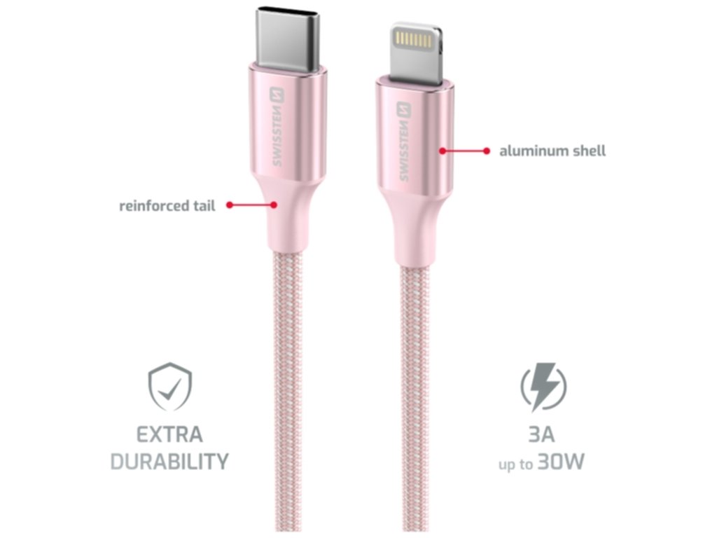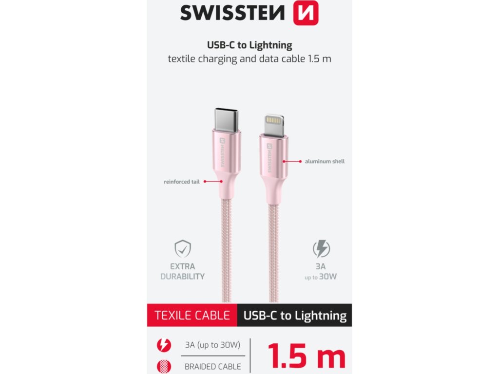DÁTOVÝ KÁBEL SWISSTEN TEXTILE II USB-C / LIGHTNING 1,5 M RUŽOVÝ