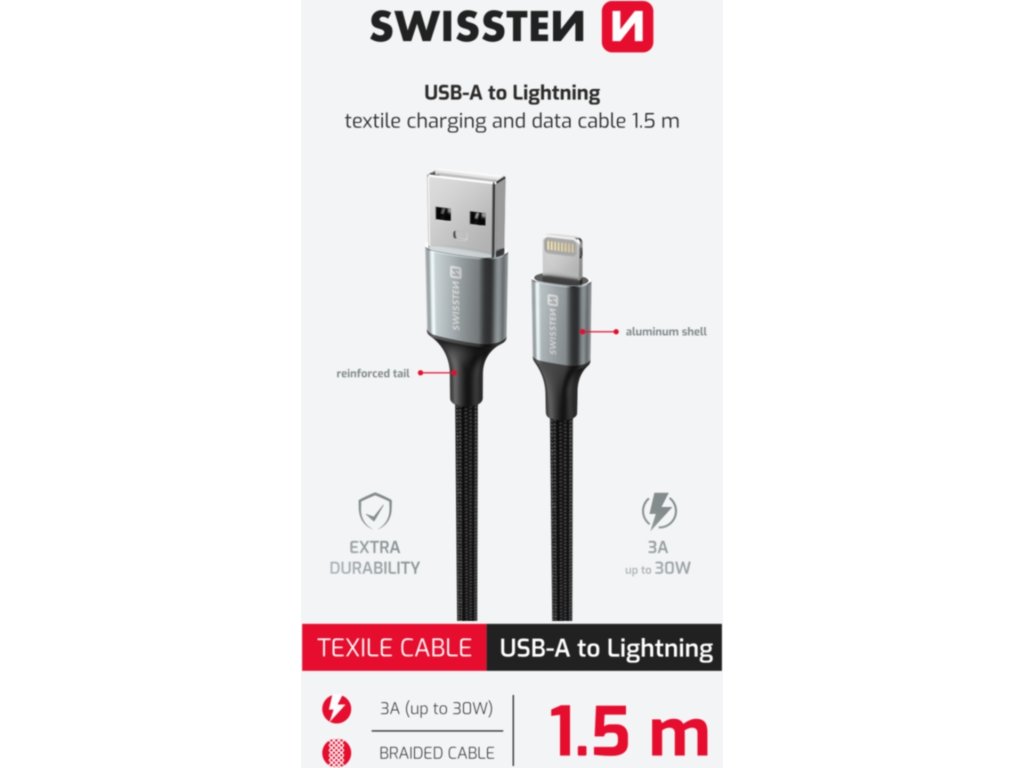 DÁTOVÝ KÁBEL SWISSTEN TEXTILE II USB / LIGHTNING 1,5 M ČIERNY